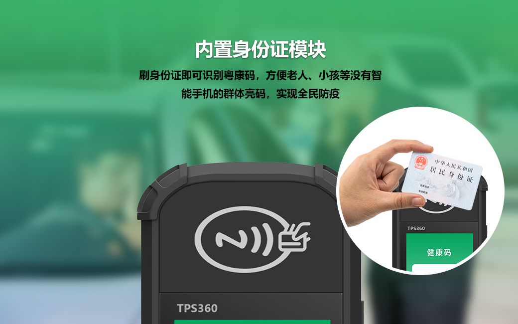手持健康码核验终端内置身份证模块,刷身份证即可识别健康码,方便老人、小孩等没有智能手机的群体亮码,实现全民防疫。