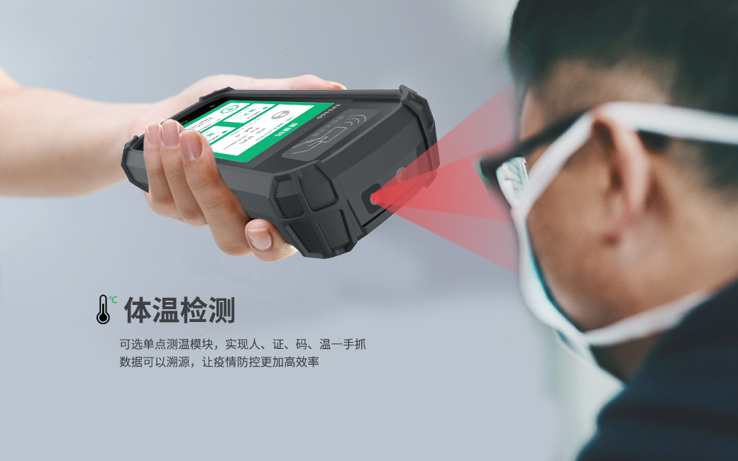 手持健康码核验终端可选单点测温模块,实现人、证、码、温一手抓,数据可以溯源,让疫情防控有更高的效率。