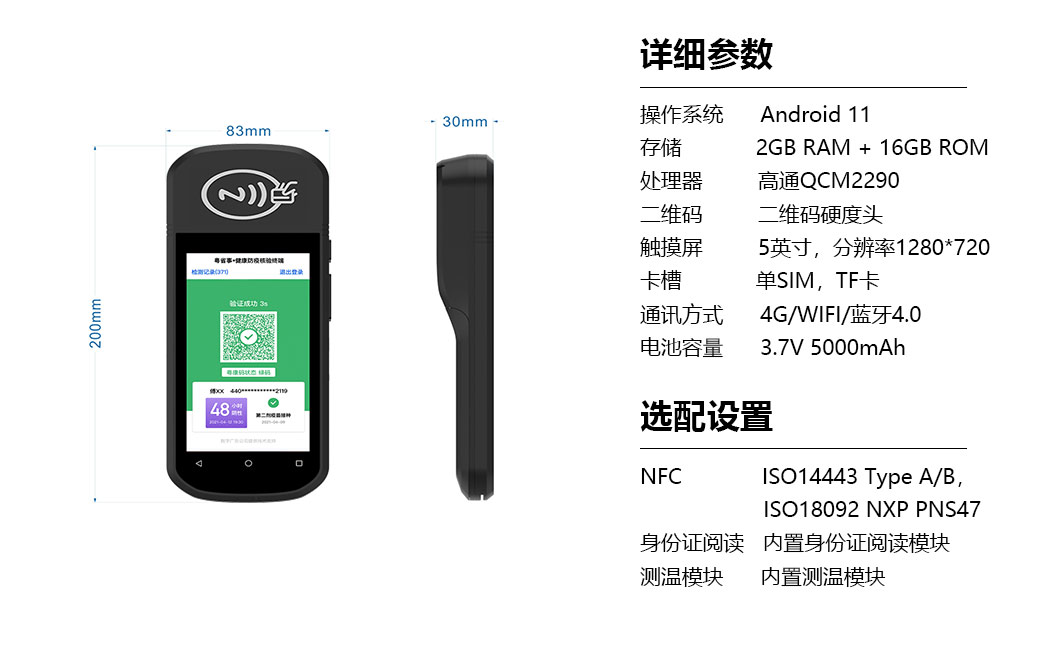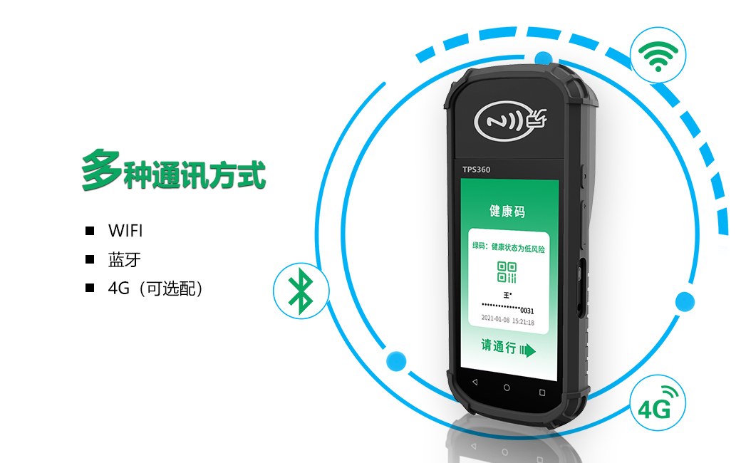 手持健康码核验终端支持4G/WIFI/蓝牙4.0等多种通讯方式