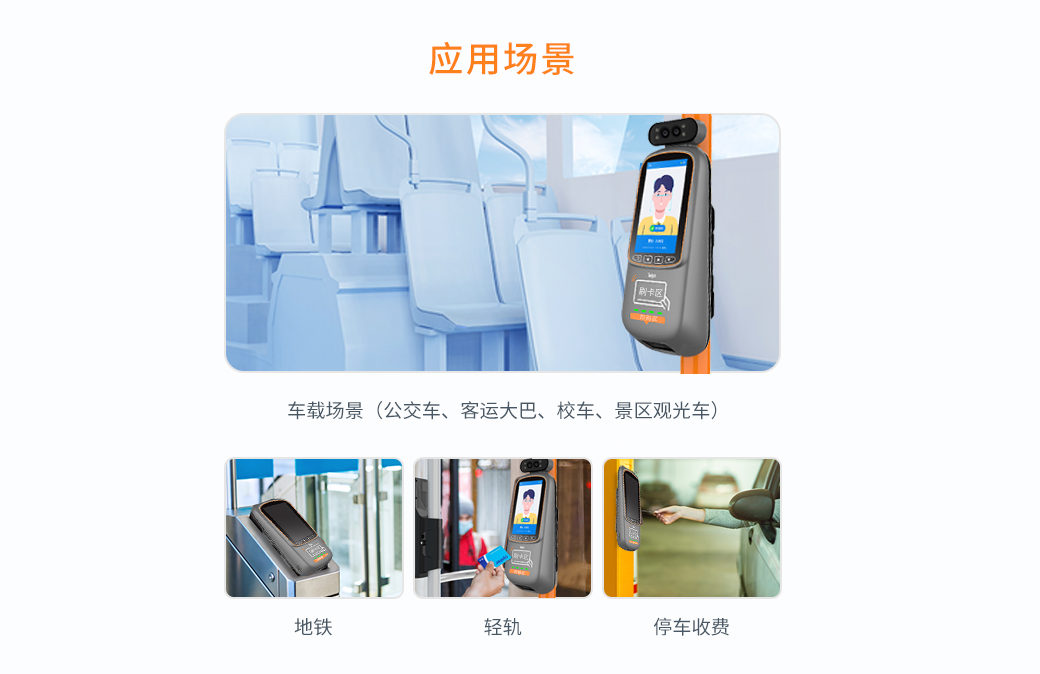 公交刷卡扫码机支持刷卡、刷脸、扫码三种支付方式,支持NFC刷卡支付兼容识别公交一卡通支付,支持微信、支付宝等第三方支付平台二维码结算。