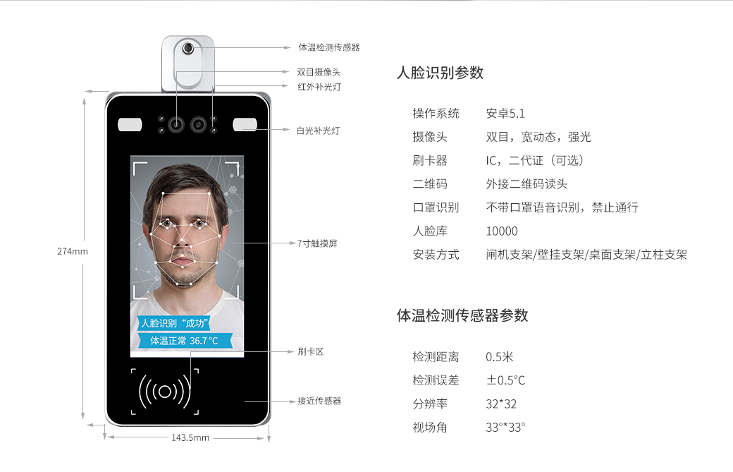 人脸识别考勤机是用于日常生活和工作中的智能硬件产品,出于防疫需要,还衍生出人脸识别测温一体机,也有人叫为测温型人脸识别终端的功能介绍。因此,疫情过测温型人脸识别终端的功能介绍依然可用作门禁、考勤等智能化应用硬件设备。