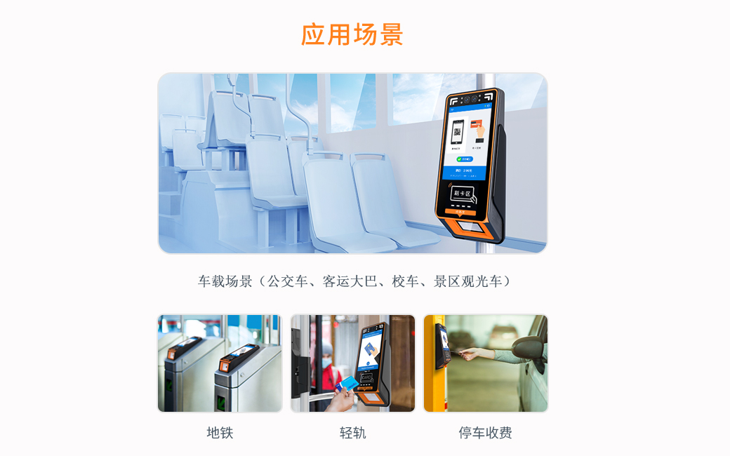 支持刷卡、刷脸、扫码三种支付方式,支持NFC刷卡支付兼容识别公交一卡通支付,支持微信、支付宝等第三方支付平台二维码结算,再也不怕手机没电、忘记带卡、手机没信号、双手抱小孩等尴尬的情况