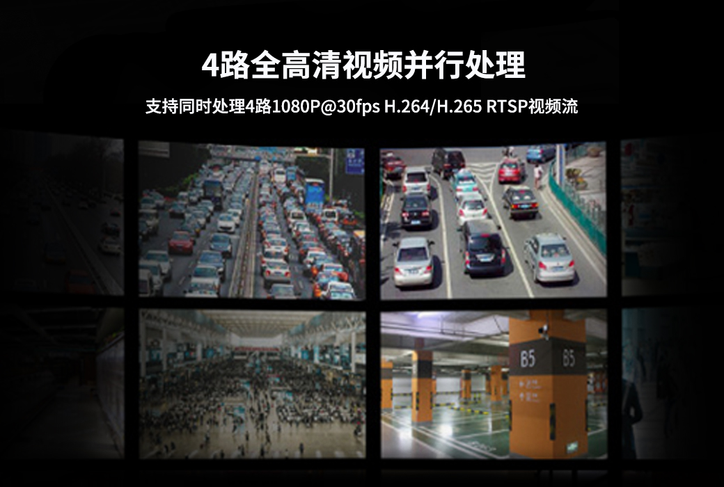 AI智能分析盒子支持同时处理4路1080P@30fps H.264/H.265 RTSP视频流。