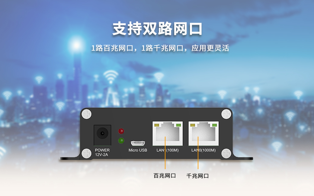 4、持双路网口(1路百兆网口,1路千兆网口);