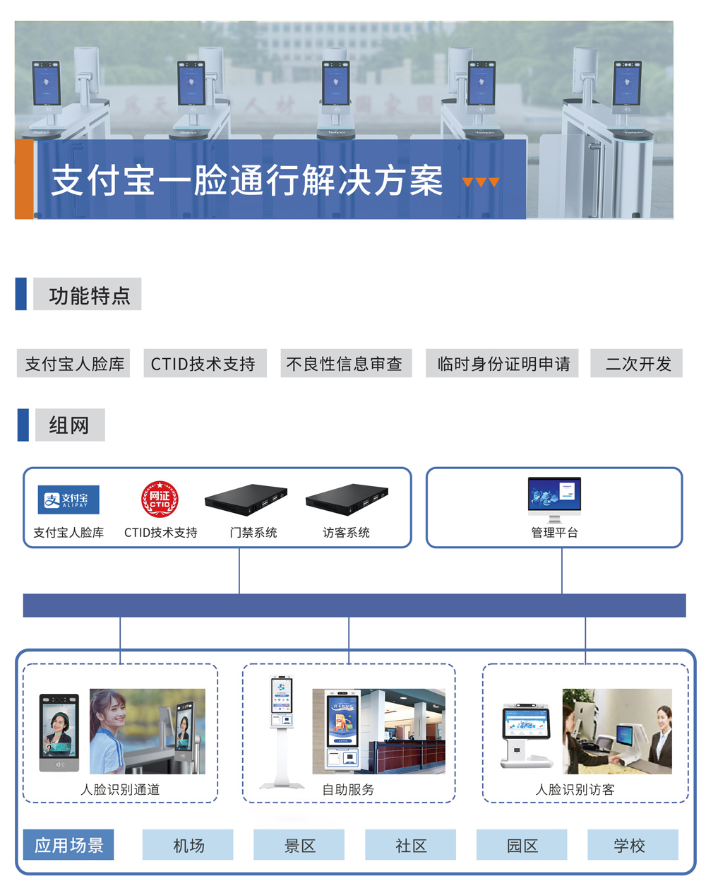 支付宝一脸通行雷竞技官方下载地址app 是基于支付宝人脸库能力+CTID技术支持,确保人员信息得到安全保障,可以根据用户权限实现门禁管理、访客管理等功能,人员通行数据记录实时上传平台;系统支持临时身份证申明、不良信息审查等功能,让通行管理更便捷、更智能、更安全。