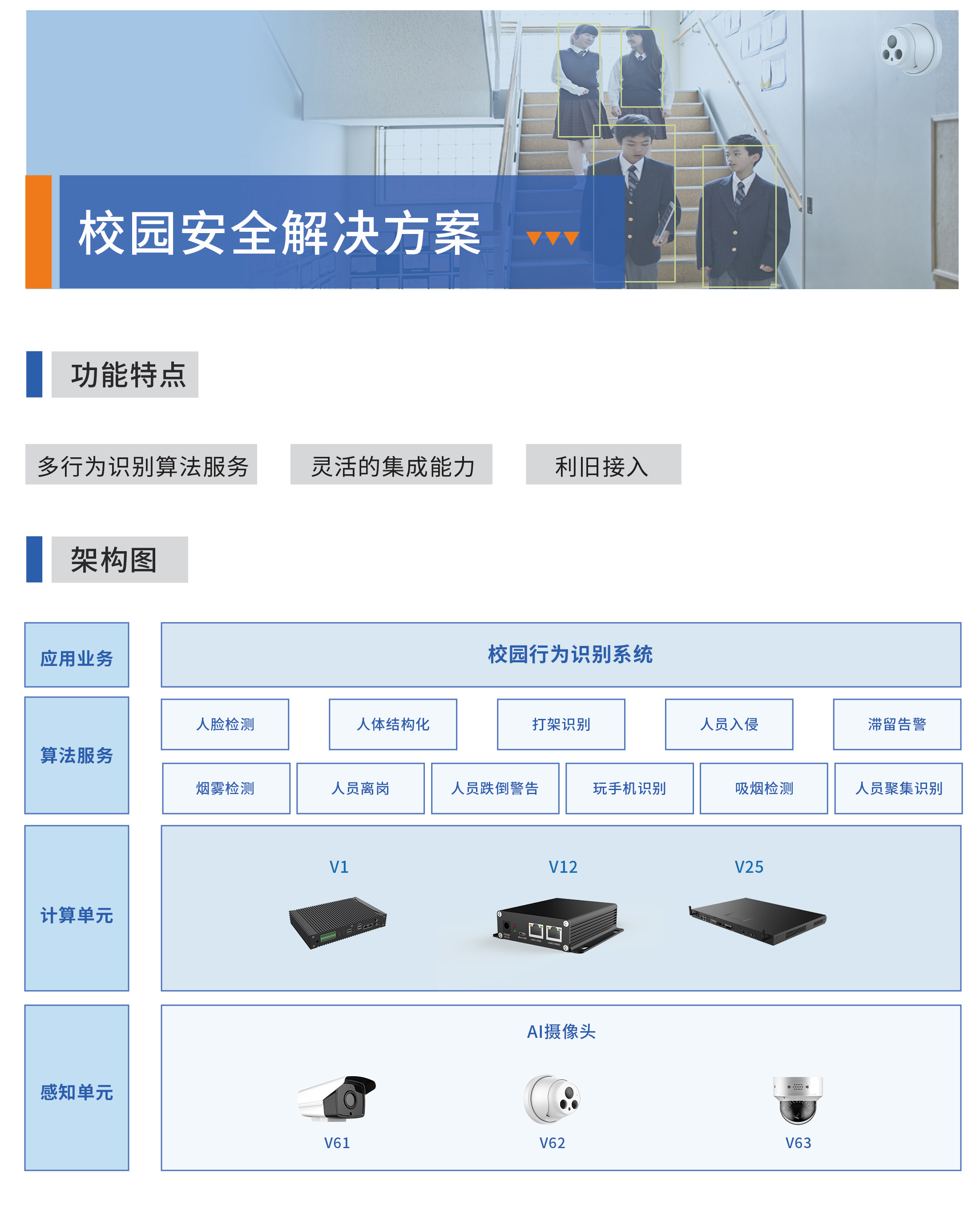 校园安全雷竞技官方下载地址app 基于AI行为识别算法,赋能前端,实现对校园内人、车、物、事的主动监测、异常告警与事件追溯,提升校园的智能安全与精细管理水平。