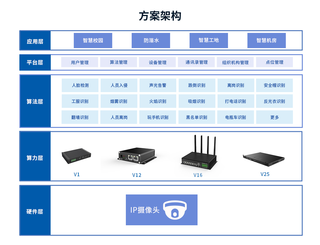 使用原有摄像头进入智能边缘网关进行图像分析,兼容已有安防系统,适合批量上线,极大降低部署成本。