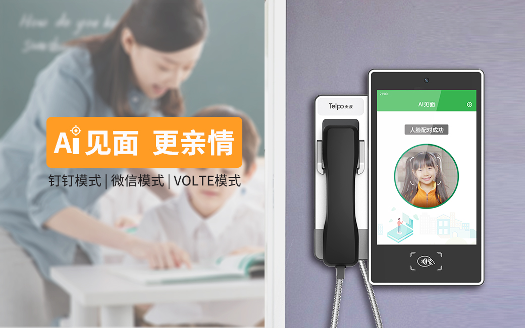 天波校园视频亲情电话融入了人脸识别技术,学生刷脸后即可选择要拨打亲情号码,不需要手动拨号,充满科技感的话机让孩子更爱与家人沟通。