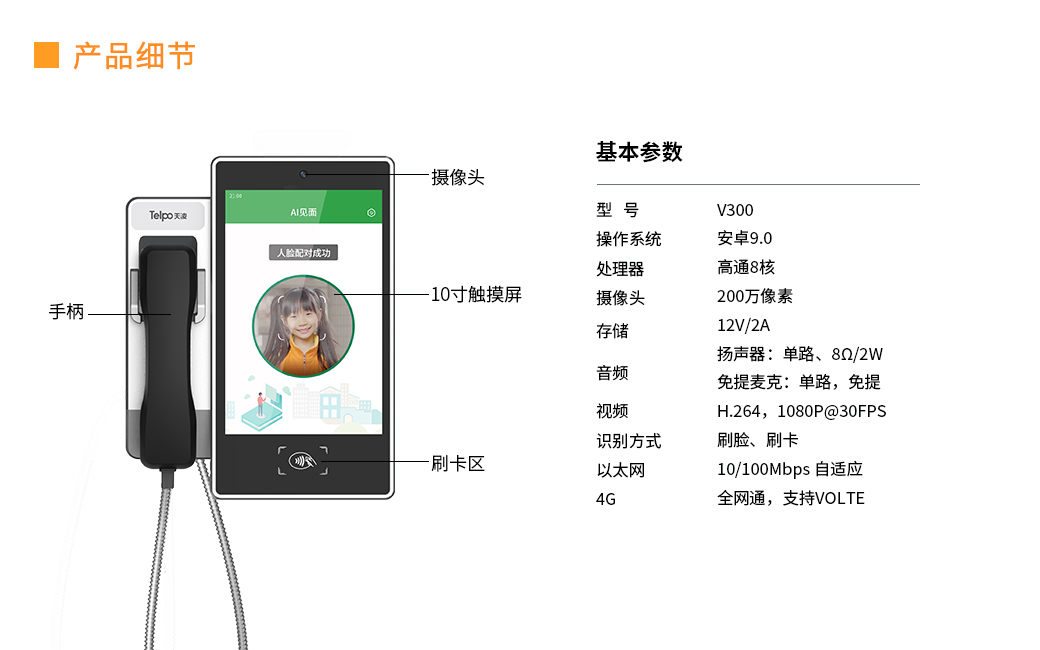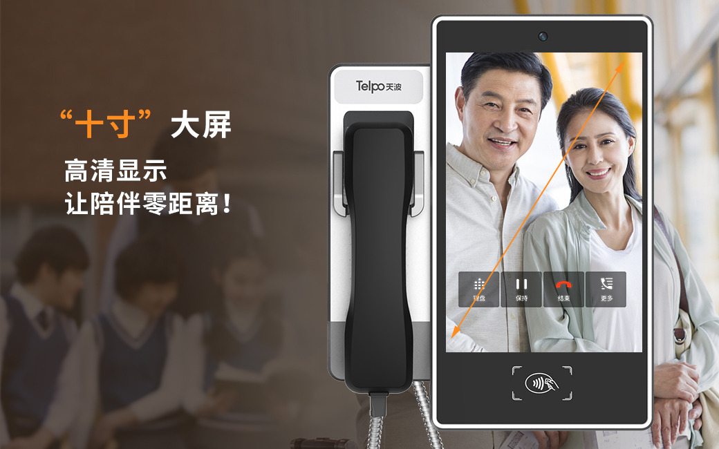天波校园视频亲情电话搭载Android 9.0系统,配置10英寸1280*800多点触控IPS电容屏和200万像素的高清摄像头,高清大屏,流畅的视频通话体验。产品同时支持4G全网通、以太网多种联网方式。