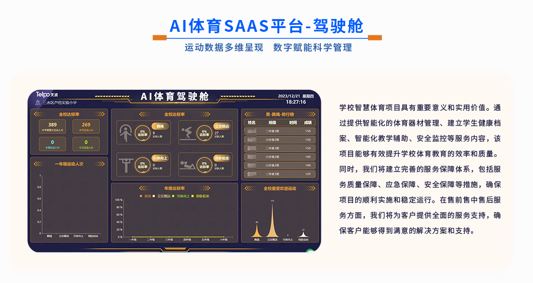 天波校园AI体育系统是将机器视觉与体育教育深度融合,通过物联网摄像头+人工智能运动视觉算法,让学生校园运动更加智能,提升学生运动的乐趣,通过运动让学生身心更健康。
